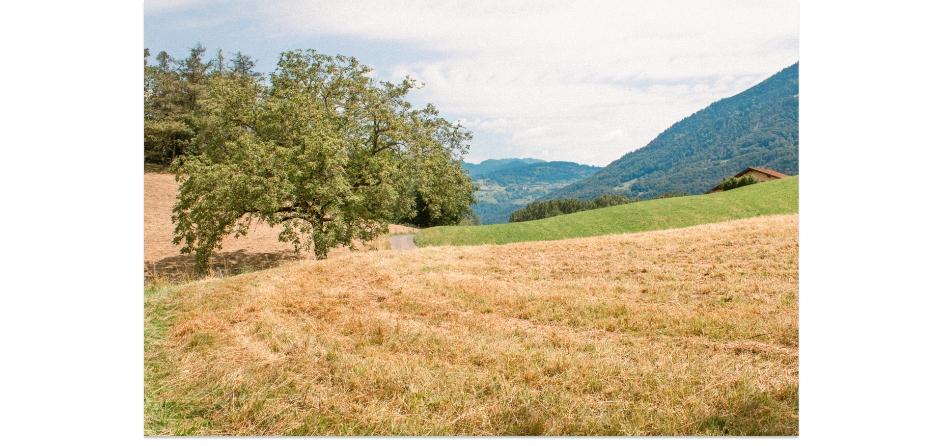 Every day on my train ride to school in Lausanne, I pass by fields and a hill that I find absolutely beautiful. One day, I decided to visit these places to capture their beauty. The sound of crickets and grasshoppers transported me to a place so calm and serene that I tried to convey that peacefulness through my photos.