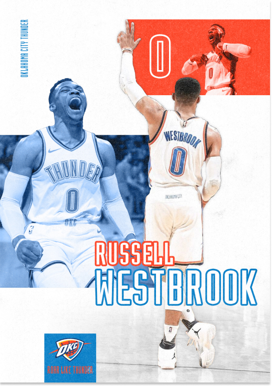 RUSSWEST emerges as a graphic design creation, taking the form of a poster that pays tribute to the inspirational basketball player, Russell Westbrook. The artwork draws from the primary colors of the team where he spent the majority of his career, creating a visual homage to his impactful journey on the court. Through this poster, the vibrant colors and dynamic design seek to capture the energy and passion that define Russell Westbrook's legacy in the world of basketball.